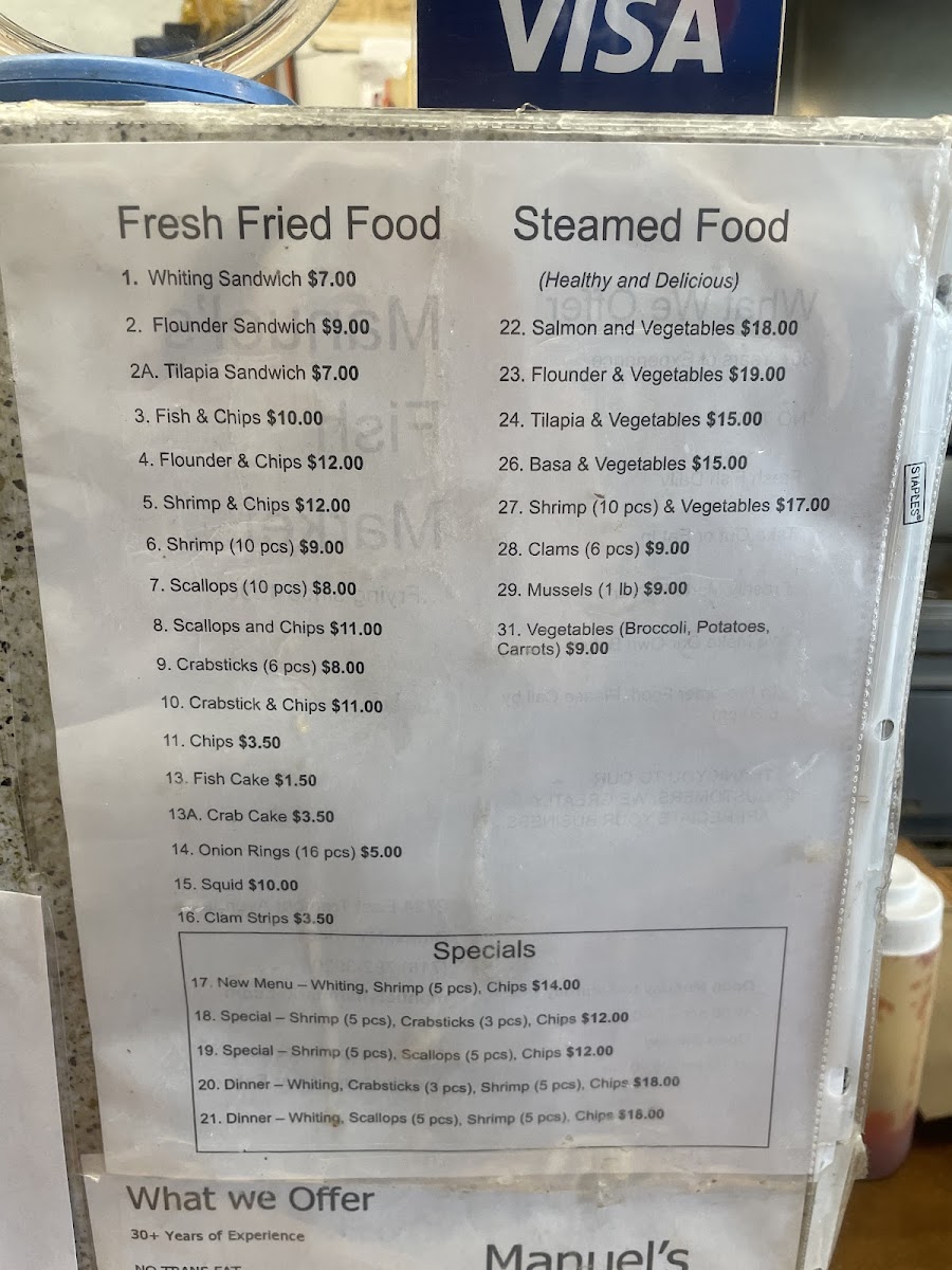 Welcome to Manuel's Fish Market, a beloved spot nestled in the Bronx that has charmed locals with its delightful seafood offerings. Renowned for the "best fried fish on the spot," this market brings a taste of the sea to your plate with an array of fresh and delicious options. The menu features everything from savory fish sandwiches to crispy shrimp and fries, all cooked to perfection.